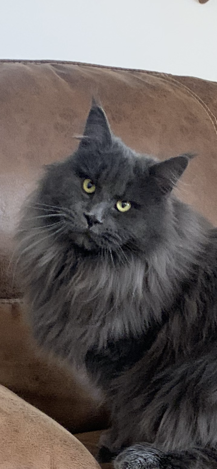 We fell in love when we saw pictures of this gorgeous solid blue kitten and shipped him here, all the way from Russia. He loves traveling to visit family and loves attention and snuggles. He's a gorgeous big boy weighing in at 20 pounds.